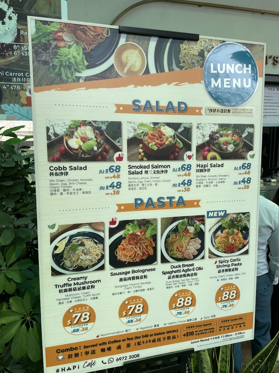 At #HAPi x YMS Cafe, the menu is thoughtfully crafted, offering a range of beverages that cater to every palate. Indulge in the invigorating Sunset Orange Americano or the equally delightful Coconut Latte, both priced at HK$55. If you’re in the mood for something a little different, the Mint Mocha or Coconut Americano are sure to satisfy your cravings. For those looking for a lighter fare during lunch hours, the Creamy Mushroom Spaghetti Set is a vegetarian delight, featuring a rich combination of mushrooms, cream, parmesan cheese, and truffle sauce for HK$88. Pair your meal with a refreshing Matcha Latte or a classic Coke for a complete experience.